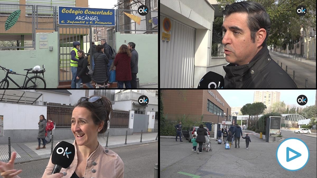 A partir de este miércoles los colegios de la Comunidad de Madrid permanecerán cerrados, al menos, durante quince días para intentar atajar la expansión del coronavirus. OKDIARIO ha acudido a la puerta de varios centros para conocer cómo afectará la medida a los padres y qué decisiones tomarán para solucionarlo.