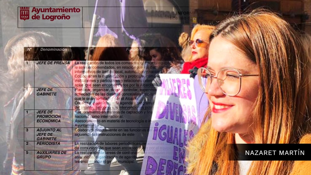 Martín es desde el pasado julio asesora del Grupo Municipal de Unidas Podemos en el Ayuntamiento de Logroño. Un cargo de confianza como personal eventual por el que percibirá un sueldo anual de 26.884,06 euros repartidos en 14 pagas, según consta en el espacio de Transparencia del Ayuntamiento de la capital riojana. Los auxiliares de grupo se encargan de la «realización de tareas de confianza, que impliquen control de visitas, asistencias, organización de agenda y relación con instituciones, que les encomiende el grupo municipal». Unidas Podemos tiene dos concejales en este consistorio gobernado por el PSOE.