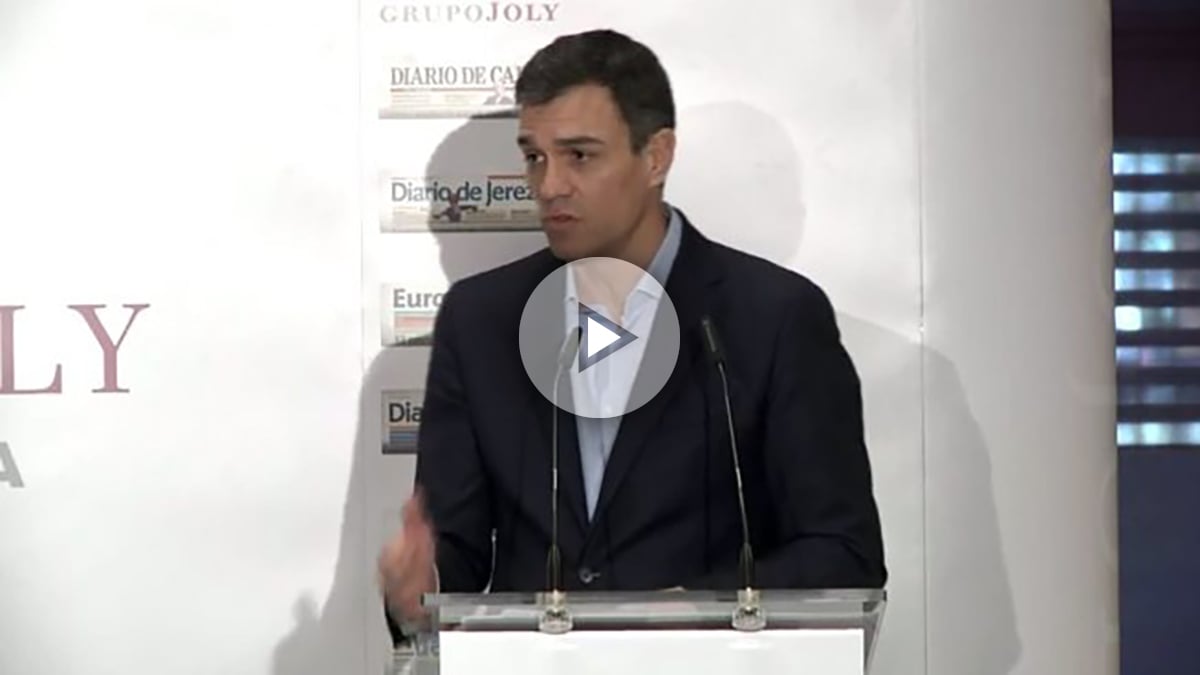 Así se ha pronunciado Sánchez durante su intervención en Sevilla en un desayuno informativo organizado por el Foro Joly, en el que ha sido presentado por la periodista Pilar del Río y al que han asistido la presidenta de la Junta, Susana Díaz, el vicepresidente de la Junta, Manuel Jiménez Barrios, el portavoz parlamentario del PSOE-A, Mario Jiménez, el alcalde de Dos Hermanas (Sevilla), Francisco Toscano, y el secretario de Áreas Institucionales del PSOE, Alfonso Rodríguez Gómez de Celis, entre otros cargos socialistas.