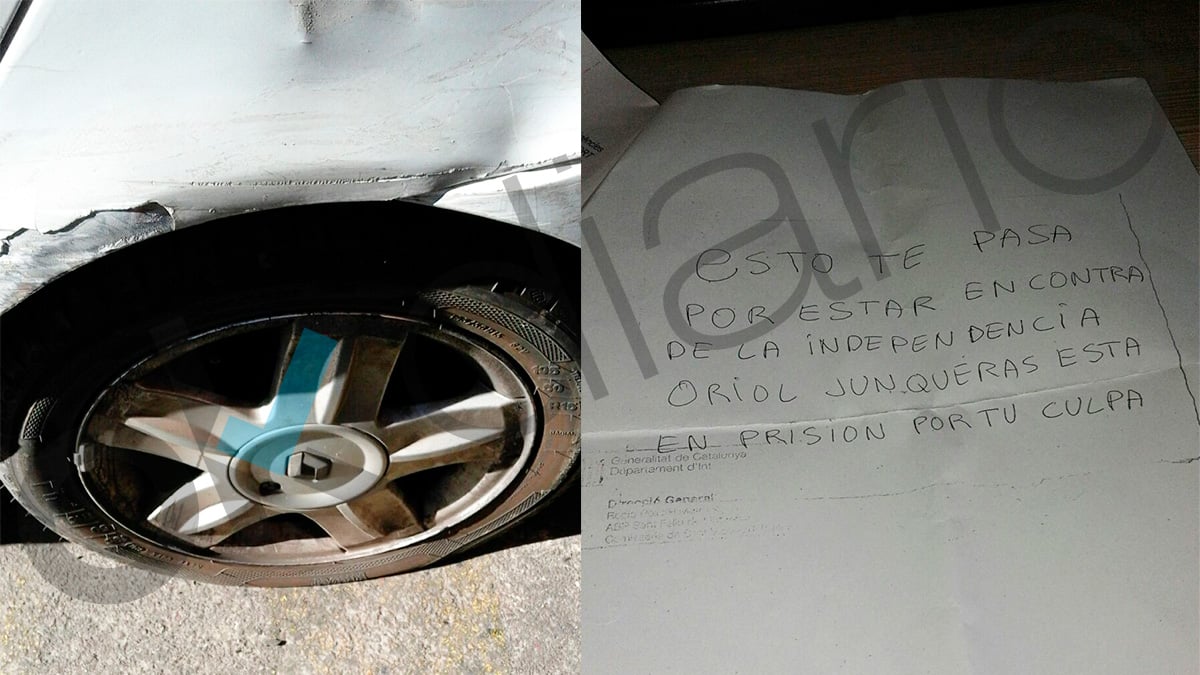 Un vecino de la localidad catalana de Sant Vicenç dels Horts, el pueblo en el que reside Oriol Junqueras, ha amanecido esta mañana con las cuatro ruedas de su coche pinchadas y una nota que decía: «Esto te pasa por estar en contra de la independencia. Oriol Junqueras está en prisión por tu culpa».