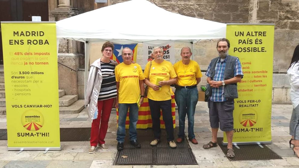 «El 48% de los impuestos que pagamos en Baleares se van a Madrid y no vuelven. 3.500 millones de euros que cada año no vuelven», es uno de los mensajes que se pueden leer en los folletos que reparte esta plataforma en la mesa informativa que cada sábado monta en la calle San Miguel de Palma de Mallorca.