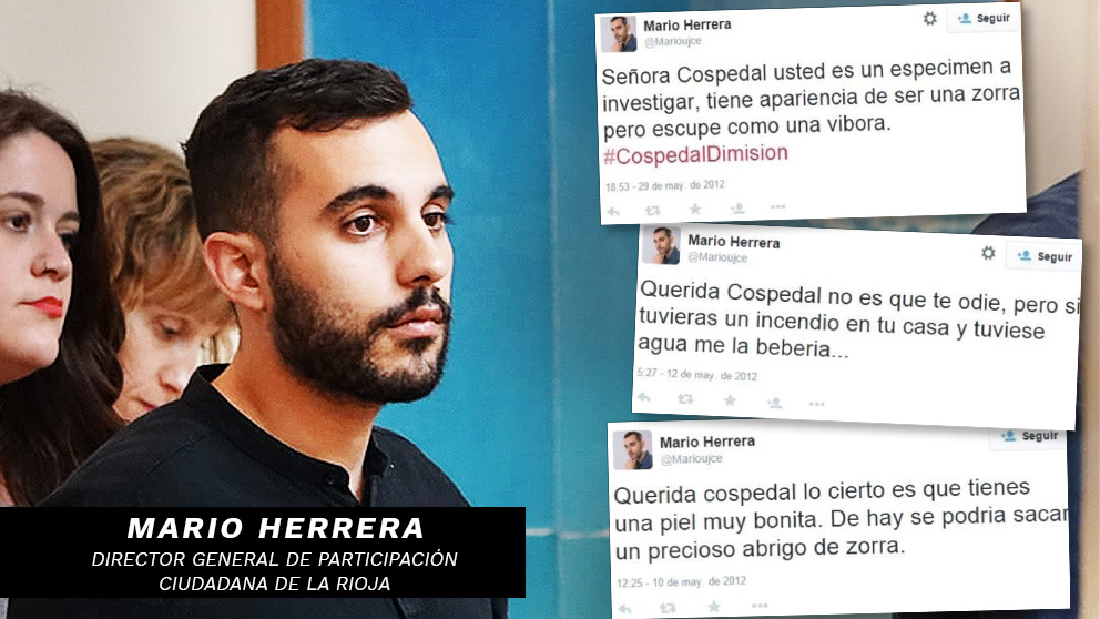 Herrera también comparó a Cospedal con una prostituta: «Señora Cospedal, usted es un especimen a investigar, tiene apariencia de ser una zorra pero escupe como una víbora», dijo el hoy alto cargo del Gobierno socialista de La Rioja.