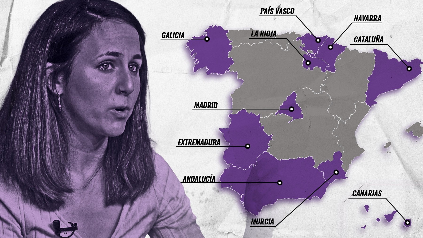 Podemos registra pérdidas en 10 comunidades autónomas. El partido de Ione Belarra a nivel regional se hunde en cinco direcciones regionales. Acaban en negativo en Galicia (52.985 euros de pérdidas), La Rioja (-27.470 euros), Canarias (-10.853 euros), Murcia (-7.111 euros) y Extremadura (-3.071 euros). A eso se suman cinco grupos parlamentarios de Podemos que gastan más de lo que ingresan en 2021: Andalucía (-296.327 euros), Cataluña (-121.176 euros), Canarias (-47.961 euros), Navarra (-20.027 euros) y Murcia (-4.205 euros). La cuenta de resultados consolidada recoge que, en suma, los grupos parlamentarios de Podemos registran pérdidas por 388.191 euros.