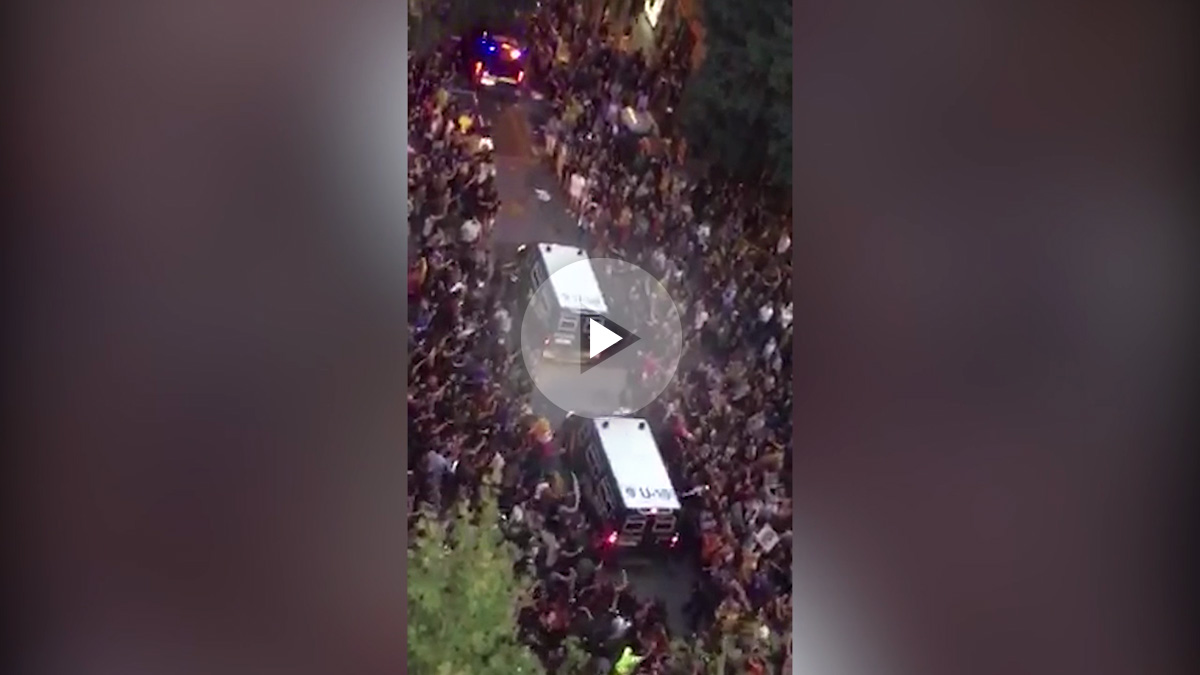 Con el paso ya abierto para los coches policiales, los secesionistas concentrados no dudaron en arrimarse a los efectivos que estaban escoltando al dispositivo a pie para increparles a escasos centímetros. Esto motivó una respuesta policial que logró dispersar a la multitud durante unos segundos. Algunos protestantes optaron por intermediar en la situación para que la cosa no fuera a mayores.