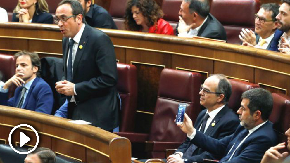 Los presos han llegado alrededor de las nueve y media de la mañana al Congreso de los Diputados conducidos por la Guardia Civil. Tras pasar a ser custodiados por la Policía, se les ha dirigido a una sala donde les esperaba un desayuno ofrecido por la ex presidenta de la Cámara, en ese momento máxima responsable del dispositivo, Ana Pastor. Así se lo ha confirmado la comisaría jefa de la Policía en las Cortes a los familiares, según ha podido saber OKDIARIO. De ahí, sin estar esposados, han sido introducidos de forma discreta en el hemiciclo, donde se les ha recibido con aplausos por parte de independentistas y diputados de Podemos.