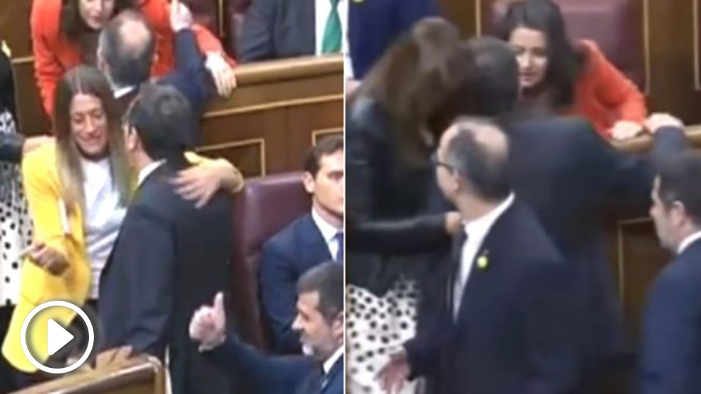 Arrimadas saludó a los diputados golpistas de JxCAT con dos besos y estuvo dialogando con ellos durante unos instantes, en presencia de las parlamentarias Laura Borràs y Miriam Nogueras. Esta actitud contrastó con la actitud del líder de Ciudadanos, Albert Rivera, que también estaba sentando cerca de los diputados catalanes y que en ningún momento se saludaron.