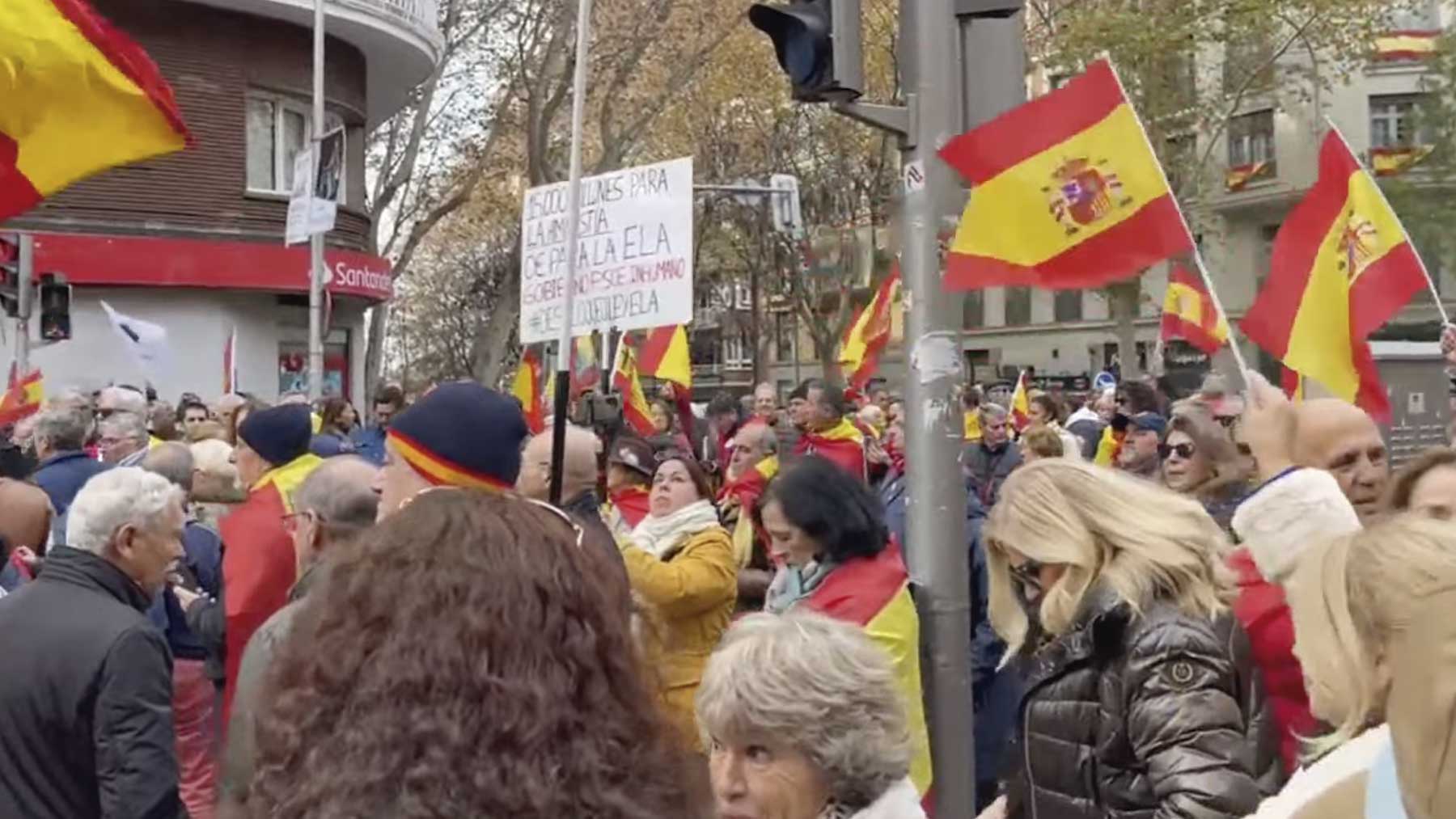 El pasado 29 de octubre, Vox reunió a 200.000 personas, según la organización, y 100.000, según delegación del Gobierno, en la madrileña Plaza de Colón. Los manifestantes portaban pancartas en las que se podían leer mensajes como: «Golpistas protegidos, españoles abandonados»o «¡Amnistía no, Sánchez traidor!».