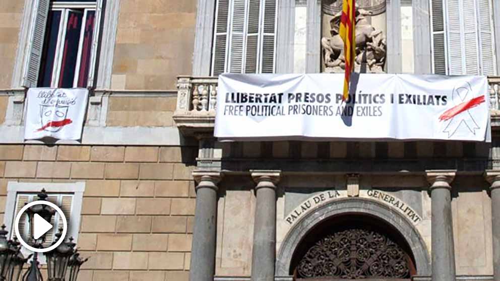 El Presidente de la Generalitat, Quim Torra, no solo no obedece a las órdenes de la Junta Electoral Central sino que además, redobla su desafío colgando nuevos símbolos golpistas en la fachada del Palau de la Generalitat.