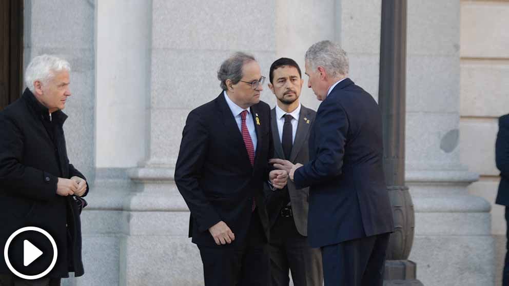 Torra ha entrado a las 9.15 de este martes en al Tribunal Supremo para asistir como público al juicio por el ‘procés sin hacer declaraciones a la prensa. Una vez dentro ha mantenido un breve encuentro con el presidente del Tribunal, Carlos Lesmes.