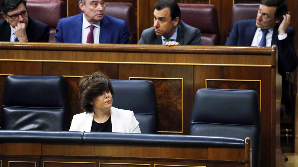 El escaño del presidente permaneció vació durante las intervenciones de los portavoces del Grupo Mixto, de los partidos catalanes, del PNV, de Ciudadanos y de Podemos.
