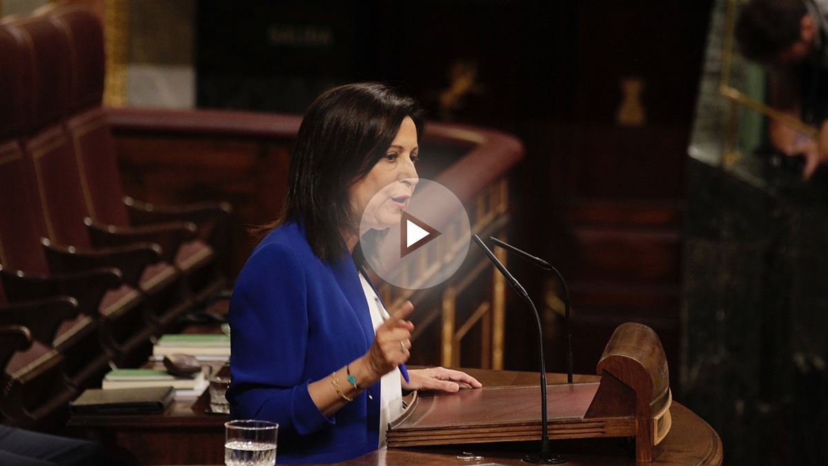 La portavoz del PSOE, Margarita Robles, comparó al presidente del Gobierno, Mariano Rajoy, con el ex presidente catalán, Jordi Pujol, apuntando: «No se envuelva como él en la bandera para tapar su corrupción».