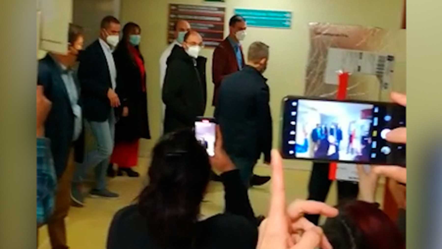 Un grupo de trabajadores ha increpado a Sánchez y a Lambán dentro del hospital universitario en un acto casi clandestino