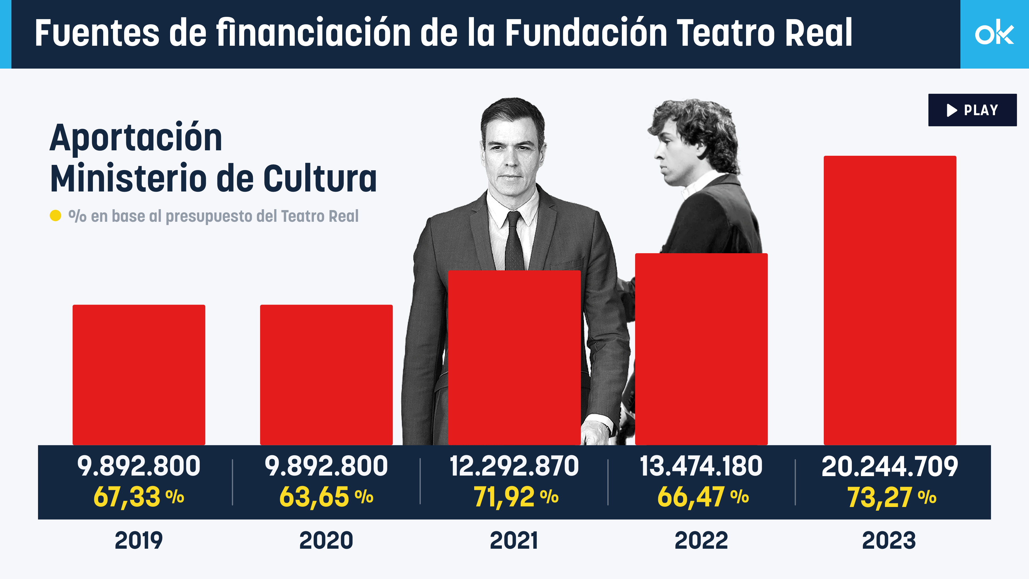 Desde 2019, la aportación del Ministerio de Cultura a la Fundación Teatro Real ha pasado de los 9.892.800 euros a los actuales 20.244.709, más del doble, según consta en la misma página de la Fundación.