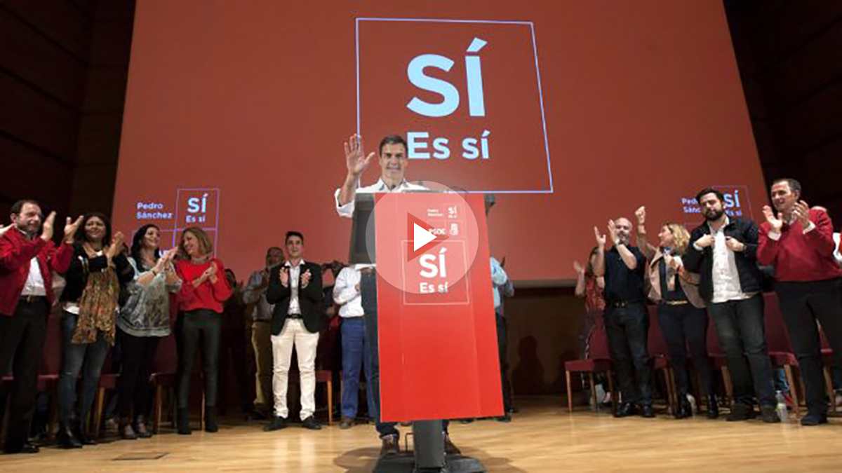 En este acto Sánchez ha estrenado un nuevo eslogan, un «Sí es sí» que sigue la estela del «no es no» con el que hizo bandera de su rechazo a abstenerse ante la investidura de Mariano Rajoy.