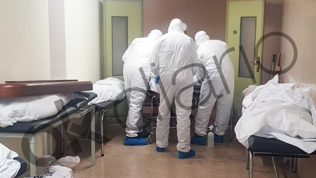 En dichas instantáneas, al igual que en las del hospital Príncipe de Asturias, se observa cómo hay hospitales en los que, por falta de espacio, los cuerpos de los fallecidos por coronavirus están apilados en el suelo envueltos en fundas de color negro.
