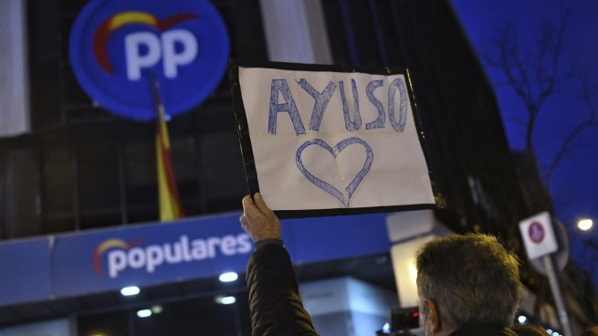 Los seguidores de Ayuso se concentran hoy ante la sede del PP contra el acoso a la presidenta madrileña