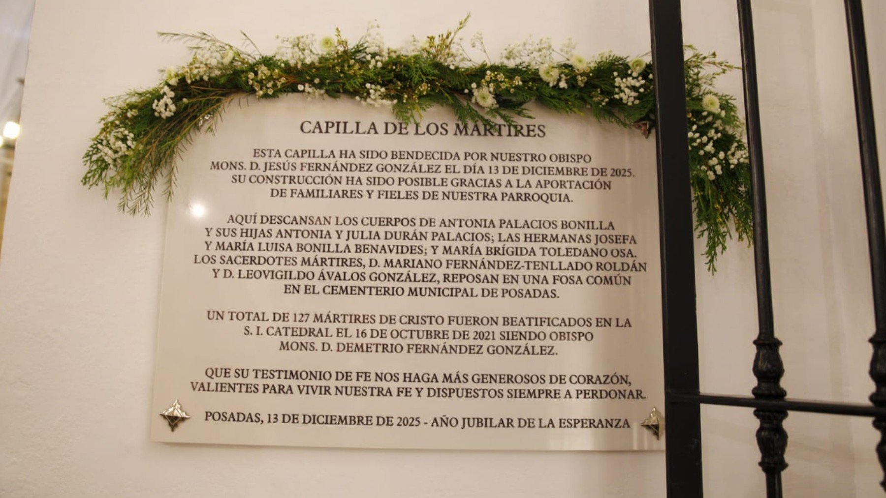 La Diócesis de Córdoba celebró el sábado 13 de diciembre en dicha iglesia parroquial una misa de acción de gracias, y el Obispo, monseñor Jesús Fernández, bendijo la nueva capilla, denominada Capilla de las Beatas.