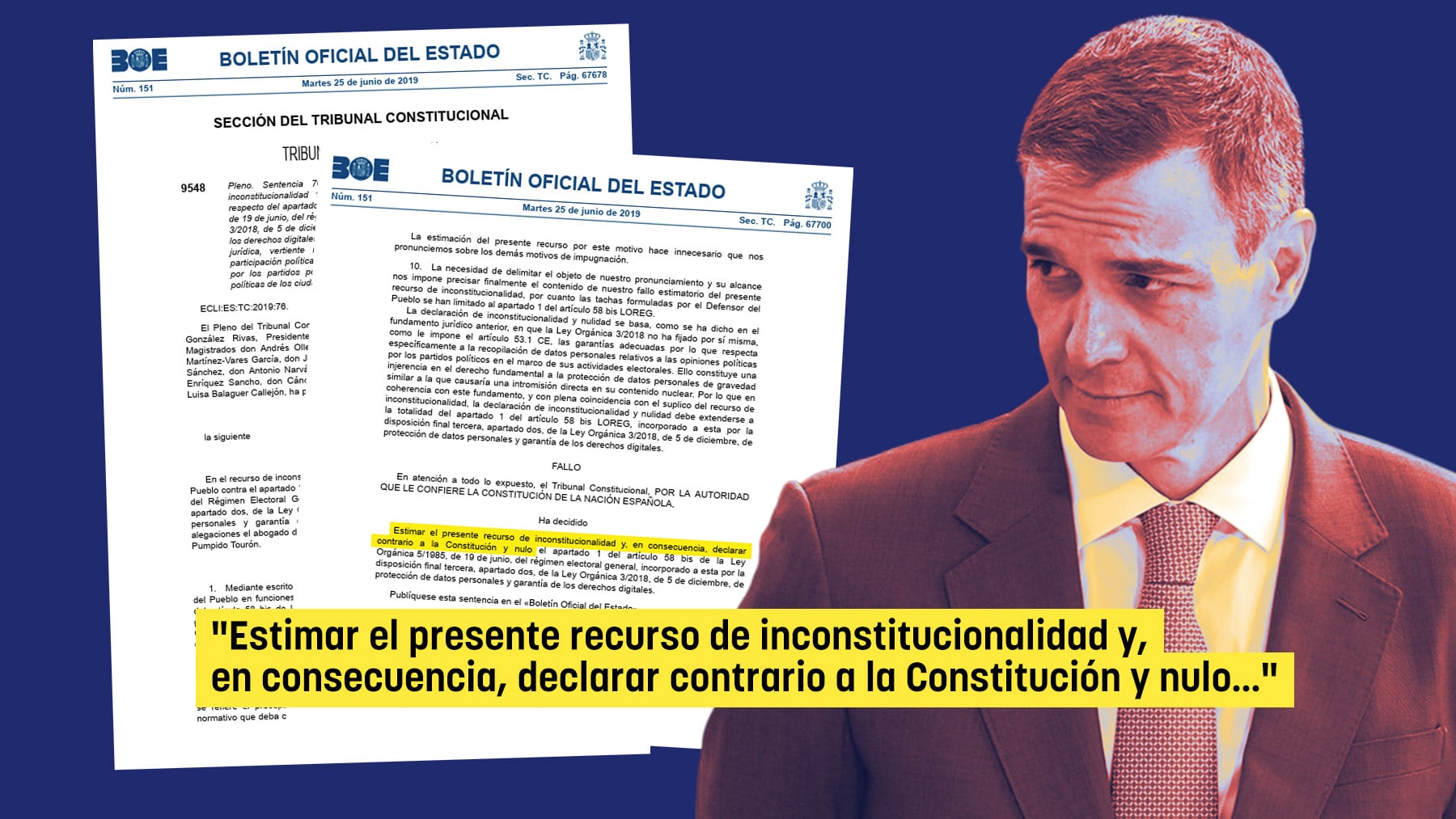 El Tribunal Constitucional dictó la importante sentencia 76/2019, de 22 de mayo, a raíz de que en 2018, durante la tramitación de la Ley de protección de datos personales y garantía de los derechos digitales, el Partido Socialista incluyó una enmienda para que los partidos pudieran recopilar las opiniones políticas de ciudadanos en las redes sociales, para elaborar perfiles y luego enviarles propaganda electoral personalizada.