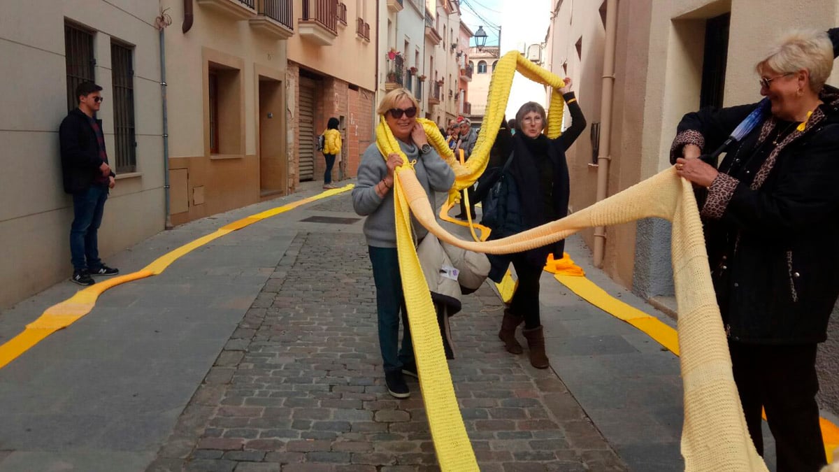 Separatistas despliegan una bufanda de 2 kilómetros en Caldes de Montbui en apoyo de los golpistas encarcelados