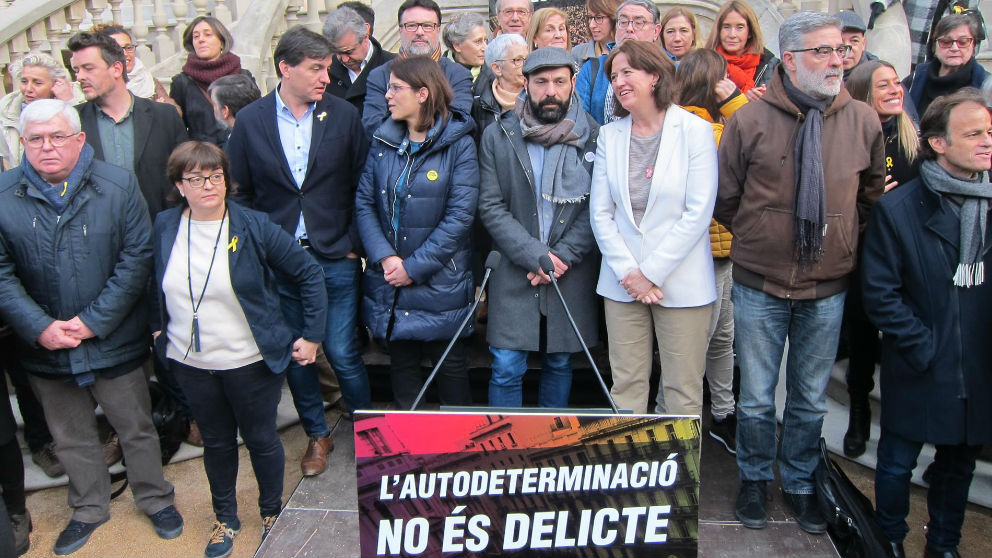 Miembros de los comuns como Jaume Asens y Joan Josep Nuet acudieron al acto de presentación de la movilizaciones, y el partido de Ada Colau ha asegurado que se sumará a las protestas y ha pedido que el Tribunal Supremo «permita y facilite la tarea de los observadores estatales e internacionales».