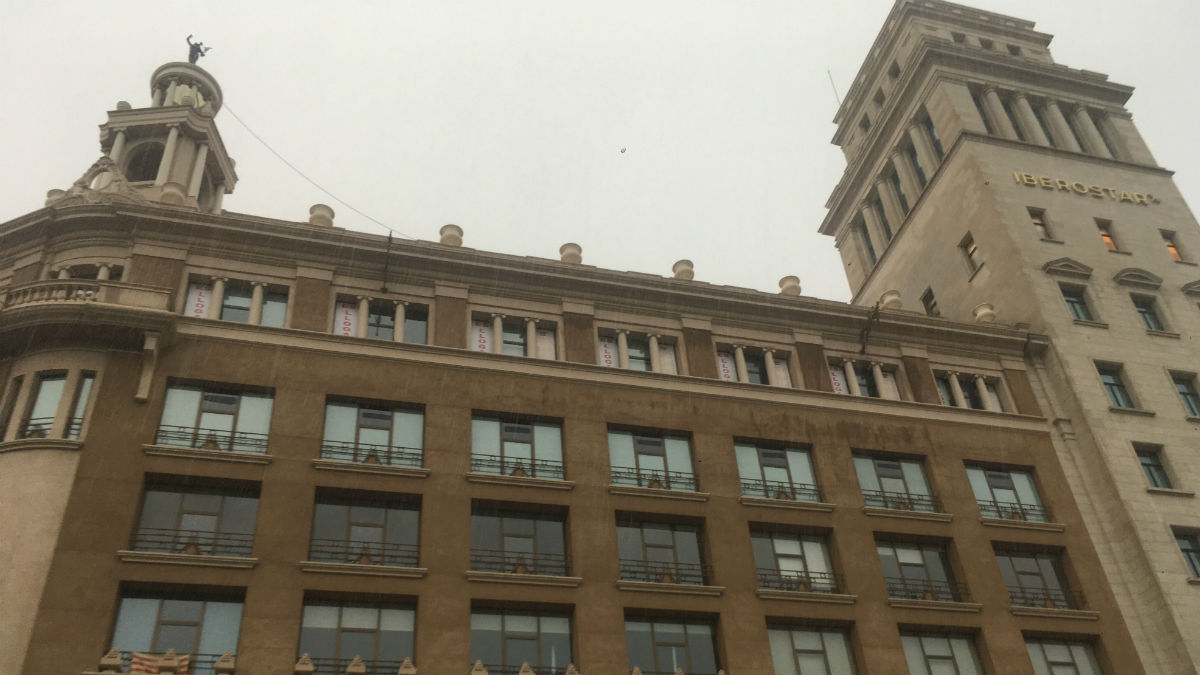 Un grupo de independentistas de los CDR ha retirado la tarde de este viernes la pancarta de rechazo a la presencia del Rey Felipe VI en el acto por los atentados en la plaza Catalunya de Barcelona que ellos mismos habían colocado.