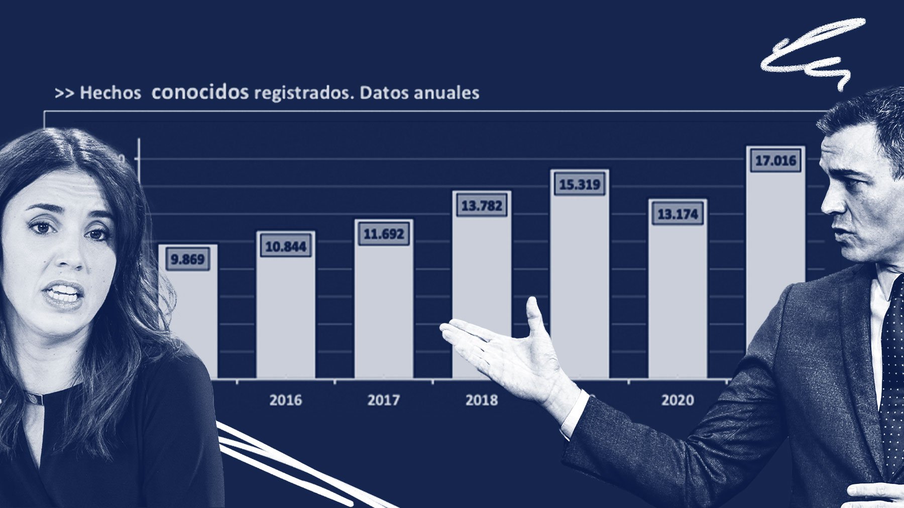 El 6 de julio de 2021, el Consejo de Ministros presidido por Pedro Sánchez aprobó la Ley de Garantía Integral de la Libertad Sexual, más conocida como Ley del sólo sí es sí. El propio presidente socialista se jactó de la norma, impulsada por Irene Montero pero con la firma de varios ministros socialistas (Justicia, Política Territorial e Interior): «Hagamos de nuestro país un lugar más libre y seguro para las mujeres. Con la Ley del sólo sí es sí protegemos su derecho a la libertad sexual y continuamos trabajando para erradicar la violencia contra ellas. Construyamos una sociedad donde todas/os vivamos sin miedo y en igualdad», enfatizó Sánchez. La norma, que recogía una rebaja de las penas para delincuentes sexuales, ha acabado provocando el efecto que ya advertían los jueces, la revisión de condenas a la baja para acosadores y violadores y también excarcelaciones. Cuando se aprobó, además, los datos del Ministerio del Interior ya mostraban que las violaciones iban al alza. Y así continuaron durante toda la tramitación parlamentaria de la norma, que acabó el pasado agosto en el Congreso son su aprobación definitiva.