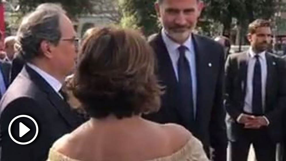 Después de dar la mano a Torra y a Masvidal, tanto el Rey como Sánchez han saludado al presidente del Parlamento regional, Roger Torrent, y a la alcaldesa de Barcelona, Ada Colau, por este orden. Felipe VI ha saludado después a otras autoridades y entonces ha recorrido la distancia que le separaba de los puestos reservados a los altos cargos, y ha empezado el acto.