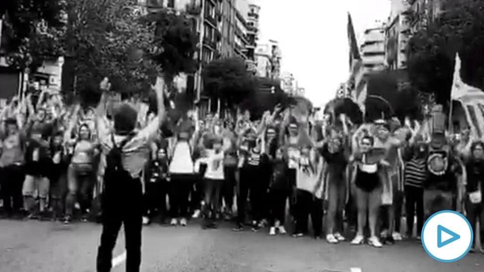 Un centenar de niños han sido grabados en las calles de Barcelona haciendo la ‘ola’ y coreando el nombre del ‘Tsunami’, el movimiento que la Audiencia Nacional investiga por un posible delito de terrorismo, mientras son dirigidos por un ‘animador’. La escena se ha podido ver este fin de semana en las calles de la capital catalana.