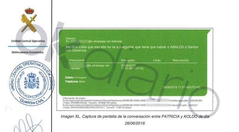 Frente a esta declaración de Cerdán -ex diputado por Navarra- en sede judicial, la UCO resalta que en dicha «conversación de WhatsApp de Koldo у Patricia del día 26 de junio de 2019, se hacía referencia expresa a la necesidad de que Ábalos o Santos mediaran para el pago de una cantidad en efectivo a Eduardo Cantos (el chófer) con cargo a la caja del PSOE».