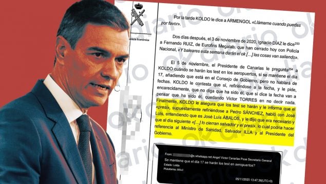 La Unidad Central Operativa (UCO) de la Guardia Civil señala en su último informe sobre la trama PSOE -al que ha tenido acceso OKDIARIO- al presidente del Gobierno, Pedro Sánchez, con nombre y apellidos, en relación al caso de las mascarillas de Baleares y Canarias cuando Francina Armengol y Ángel Víctor Torres presidían estas comunidades. Los investigadores detallan que fue Sánchez quien autorizó los test PCR en aeropuertos que acabó suministrando la trama de Koldo García, José Luis Ábalos y Víctor de Aldama.