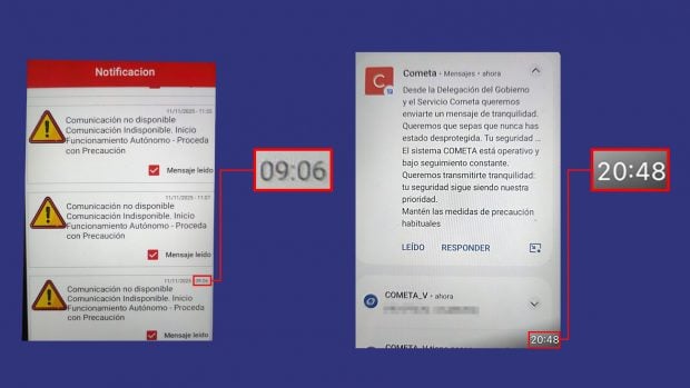 RESPUESTA: A las 09:06 recibo la primera alerta y después fueron muy seguidas. A las 11:10, 12:05 y así estuvo hasta 11 y 12 veces hasta las 15 horas.