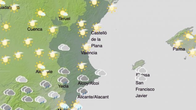 Este cielo nuboso y la probabilidad de precipitación llegarán a la provincia de Valencia desde primera hora de la tarde. En la capital de la Comunidad Valenciana, las máximas serán de 23 ºC durante el día y de 13 ºC durante la noche. Cielo con intervalos de nubes bajas en el litoral a primeras horas, tendiendo a disminuir, e intervalos de nubes medias y altas que avanzarán de sur a norte durante el día. Temperaturas con pequeños cambios. Viento flojo de dirección variable por la mañana, tendiendo a componente este al mediodía», dice la AEMET sobre el tiempo en Valencia.