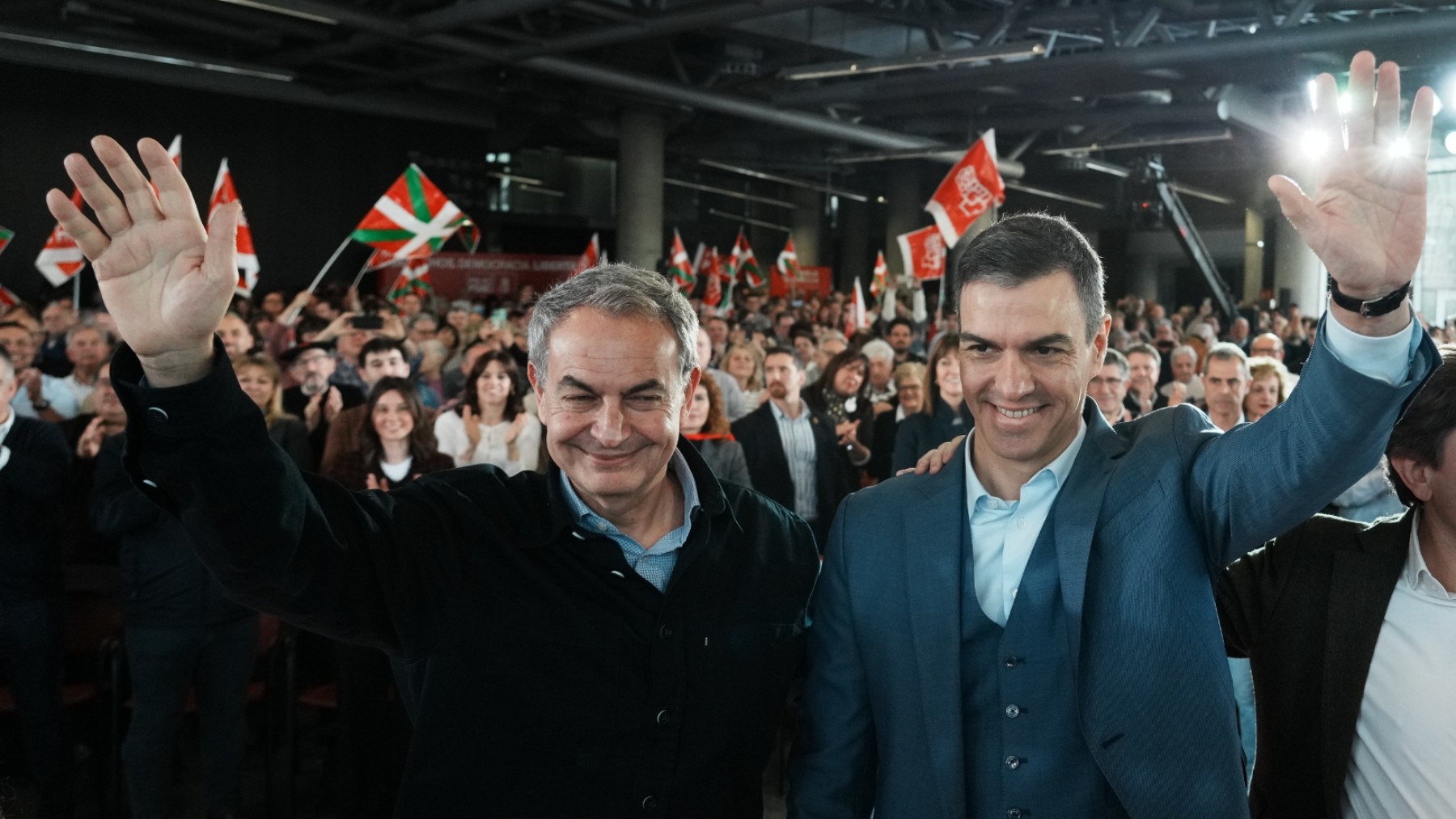 Asimismo, se han rememorado algunas de las decisiones adoptadas por el Ejecutivo socialista, como la retirada de las tropas españolas de Irak o la aprobación de la Ley del Matrimonio Igualitario, ambas muy aplaudidas por los cientos de simpatizantes presentes en un acto en el que se han ondeado banderas del PSE-EE e ikurriñas.
