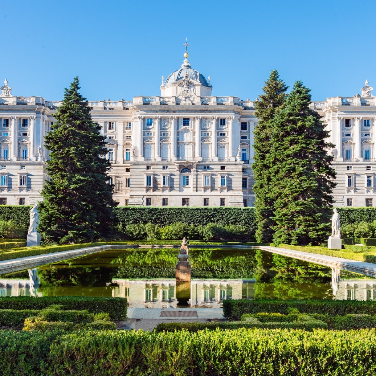 El Palacio Real, residencia oficial del Rey de España, aunque hoy en día sólo se usa para ceremonias de Estado, es la arquitectura regia más grande de Europa, además de llamar la atención por sus miles de habitaciones. La construcción comenzó en 1738 bajo el reinado del primer Borbón, Felipe V, una razón que podría explicar algunos aspectos en común con el estilo barroco del Palacio de Versalles, y terminado con Carlos III, que fue el primer monarca que vivió en él.