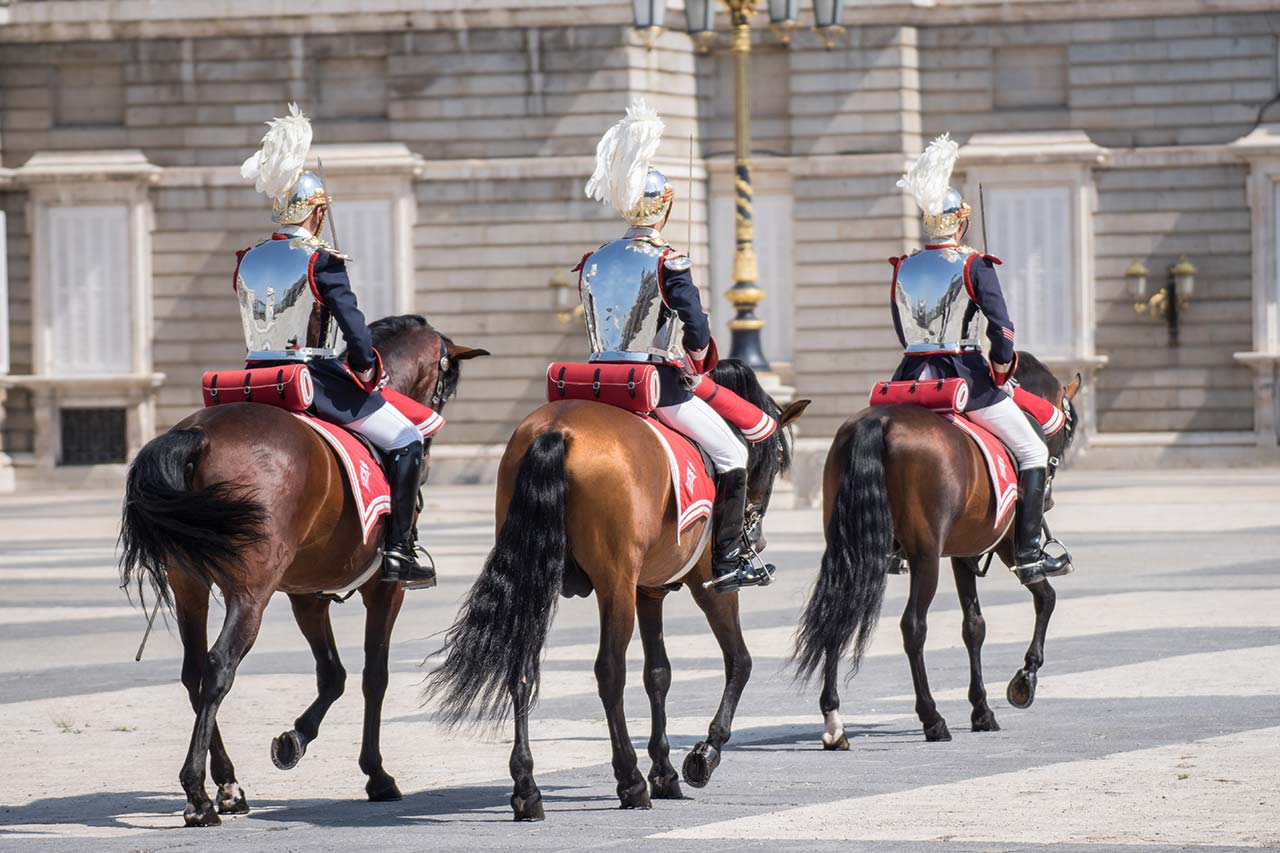 Los visitantes, además, van a poder ser testigos del relevo solemne de la Guardia Real en el Patio de la Armería. Una acción en la que intervienen hasta 400 efectivos, destacando los lanceros y alabarderos, así como caballos y piezas de artillería. El relevo se puede presenciar los primeros miércoles de cada mes, excepto en enero, agosto y septiembre.