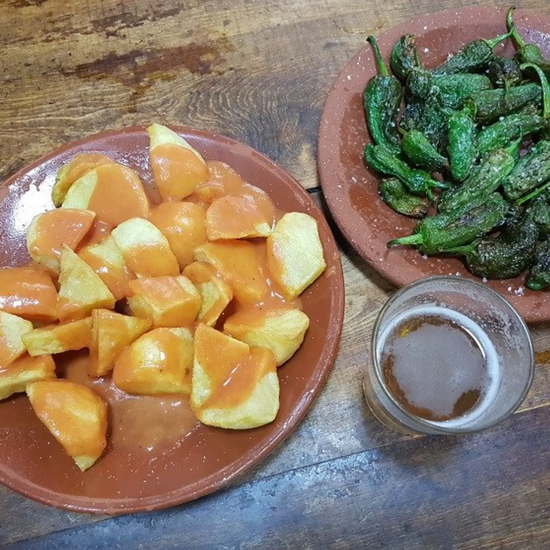 Allí podemos tomar carrilleras de cerdo con textura de mantequilla, calamares a la romana con un rebozado ligero y perfecto, croquetas cremosas con un toque de sabor desconocido, tostas de matrimonio de sardina ahumada y boquerón, solomillo o un lomo alto de ternera acompañado de patatas fritas que se notan recién cortadas y pimientos dulces del padrón, ideal para los que no quieren que piquen. No podemos perdernos tampoco, obligación si vamos, las sartenes con patatas naturales combinadas con huevos fritos y viandas como la morcilla de arroz o la chistorra.