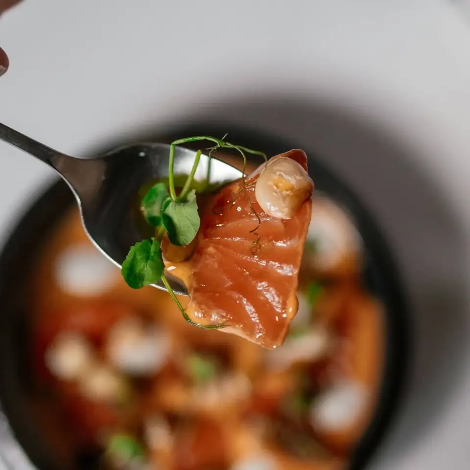 Podemos tomar, por ejemplo, ensaladilla Latasia con camarones fritos, vieiras atómicas, brioche de steak tartar, panceta glaseada con salsa agripicante, bao de pollo anticuchero o saam de alitas de pollo deshuesadas. De postre, los entendidos en dulce, dicen que sí o sí tenemos que probar la torrija de brioche caramelizada o el flan de vainilla.