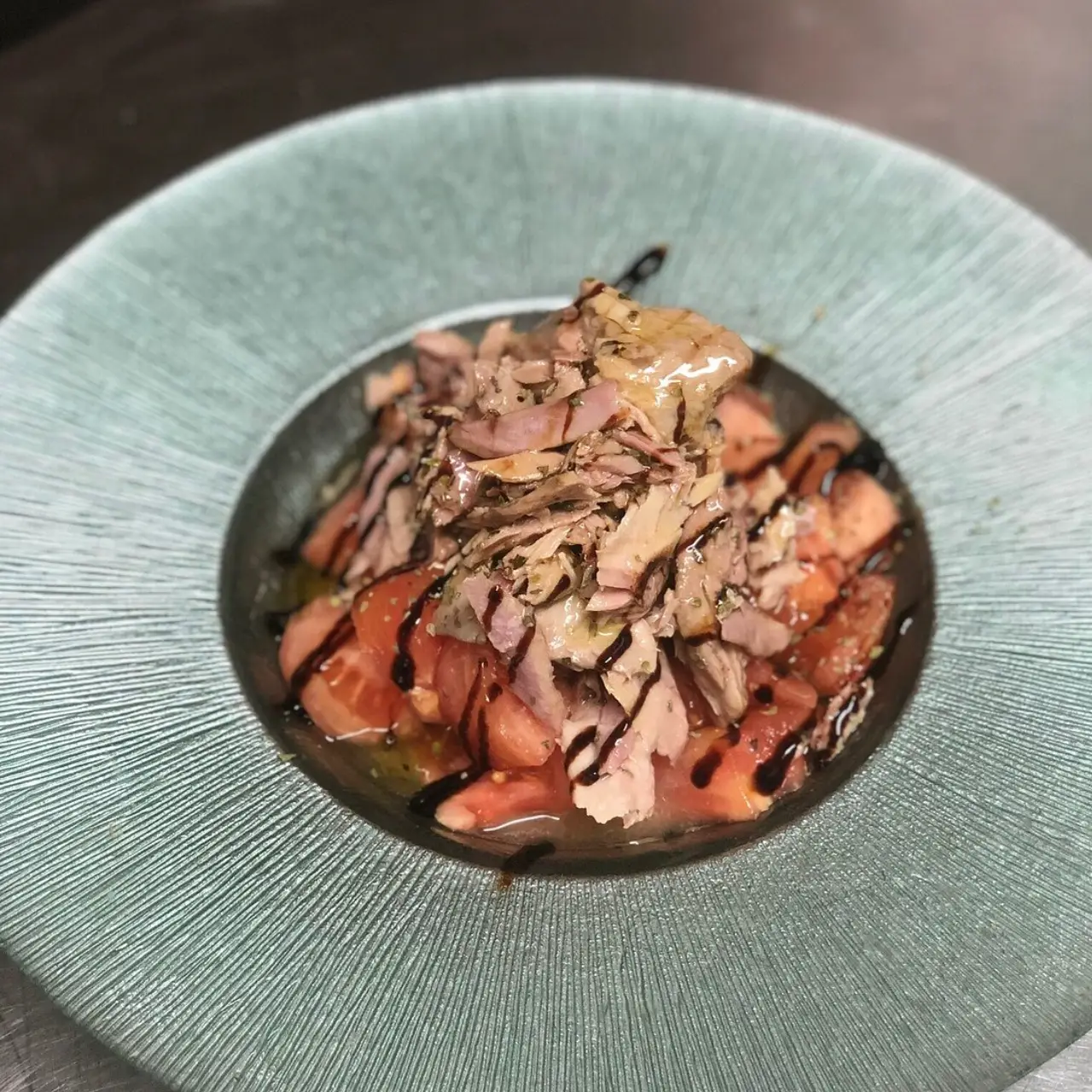 Entre sus platos destaca la ensalada de espárragos trigueros con parmesano, bonito encebollado, carrillera de jabalí con boletus, cecina de wagyu, puerros con salmón, habitas con huevos de codorniz, huevos de corral trufados con foie o solomillo de canguro, carpaccio de vaca vieja o taquitos de solomillo con salsa de vinagre de Jerez.
