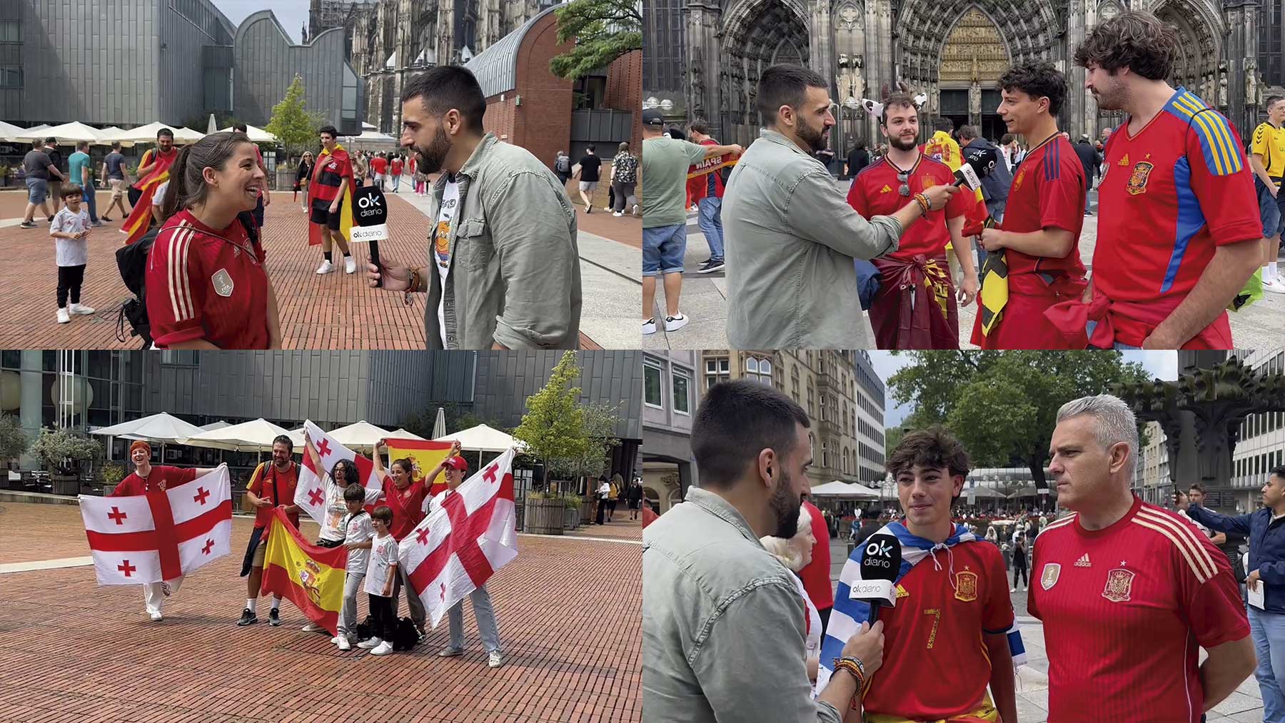 Los aficionados españoles se hicieron notar en las calles de Colonia en las horas previas al encuentro que enfrentará a España y Georgia en el RheinEnergieStadion. El combinado nacional busca los cuartos de final ante una debutante selección georgiana que ya ha demostrado en esta Eurocopa que es capaz de dar mucha guerra. Entre otras cosas, ya ha ganado a Portugal para colarse en octavos de final.