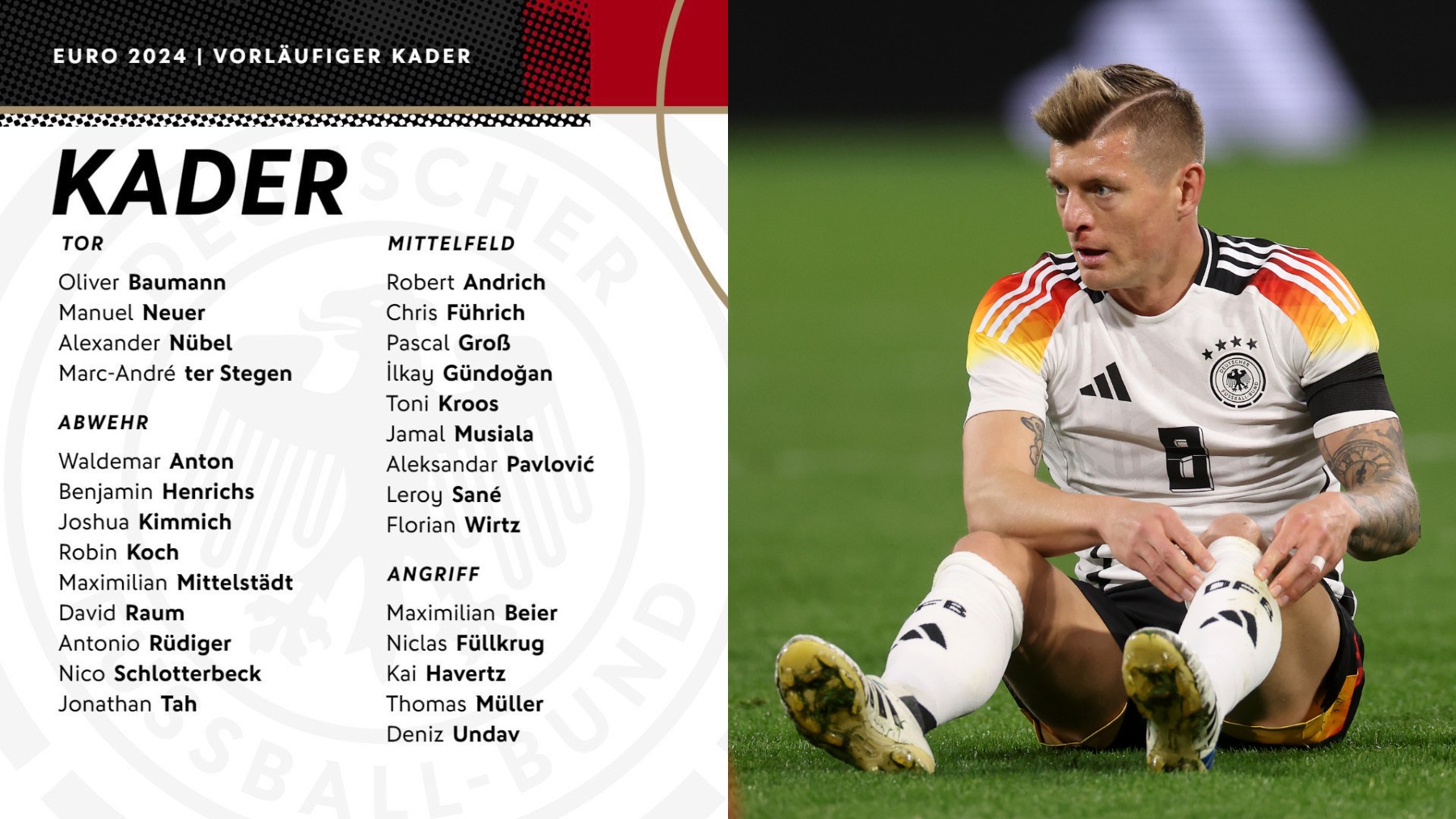 - Centrocampistas: Robert Andrich, Chris Führich, Pascal Gross, Ilkay Gündogan, Toni Kroos, Jamal Musiala, Aleksandar Pavlovic, Florian Wirtz, Leroy Sané.
