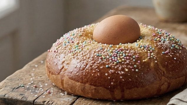El huevo es el elemento que define este bollo. Se coloca con cáscara directamente sobre la masa y queda integrado después del horneado. Su presencia está relacionada con el final de la Cuaresma, un periodo en el que tradicionalmente se limitaba el consumo de huevos. Cuando llegaba la Pascua, se recuperaban y aparecían en recetas como esta.