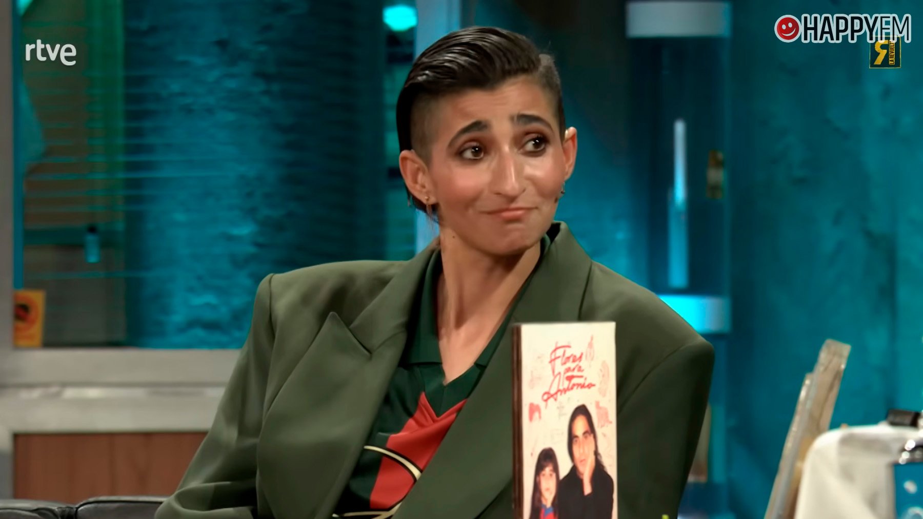 Al ver de lo que se trataba, David Broncano no pudo evitar emocionarse: «Esto es una preciosidad», comenzó diciendo, sin dar crédito a lo que tenía en sus manos. Y lo explicó: «Una foto de la familia Flores al completo». Poco después, continuaron hablando del documental en el que Alba Flores ha tenido la oportunidad de poder reconciliarse con ciertos bloqueos que tenía desde su niñez, como era el caso de cantar canciones de su padre.»Ahora me siento libre. Estoy como en la adolescencia musical», aseguró la invitada de La Revuelta.