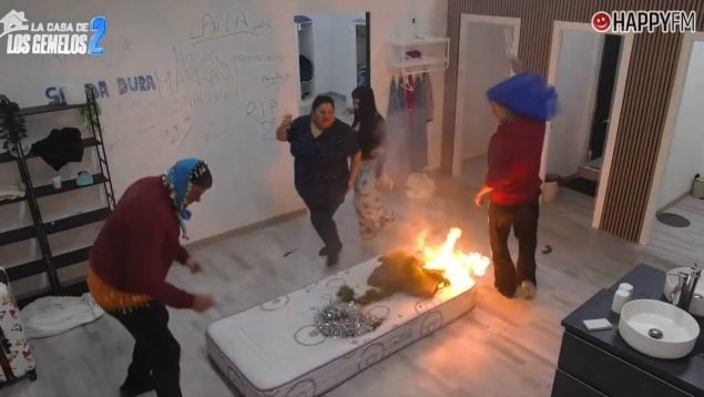Hasta tal punto que los espectadores estuvieron a punto de ser testigos de una auténtica desgracia. Más allá del destrozo de paredes y mobiliario que ha venido ocurriendo en las últimas semanas, todo fue mucho más allá cuando un grupo de concursantes decidió prender fuego a un colchón dentro de la propia casa, lo que generó una enorme cantidad de humo. De hecho, se pudo ver cómo Patica, uno de los participantes, decidió echar sobre ese fuego no solamente una manta, sino también espumillón de Navidad. Algo por lo que La Falete le llamó la atención: «Cosas de plástico no, que hay mucho humo y vamos a ahumar toda la casa», comentó. Mientras el fuego crecía, varios participantes se pusieron a bailar. Ante la gravedad de la situación, los miembros de seguridad entraron a la casa con un extintor de polvo, con la única intención de apagar el fuego a la mayor brevedad posible.