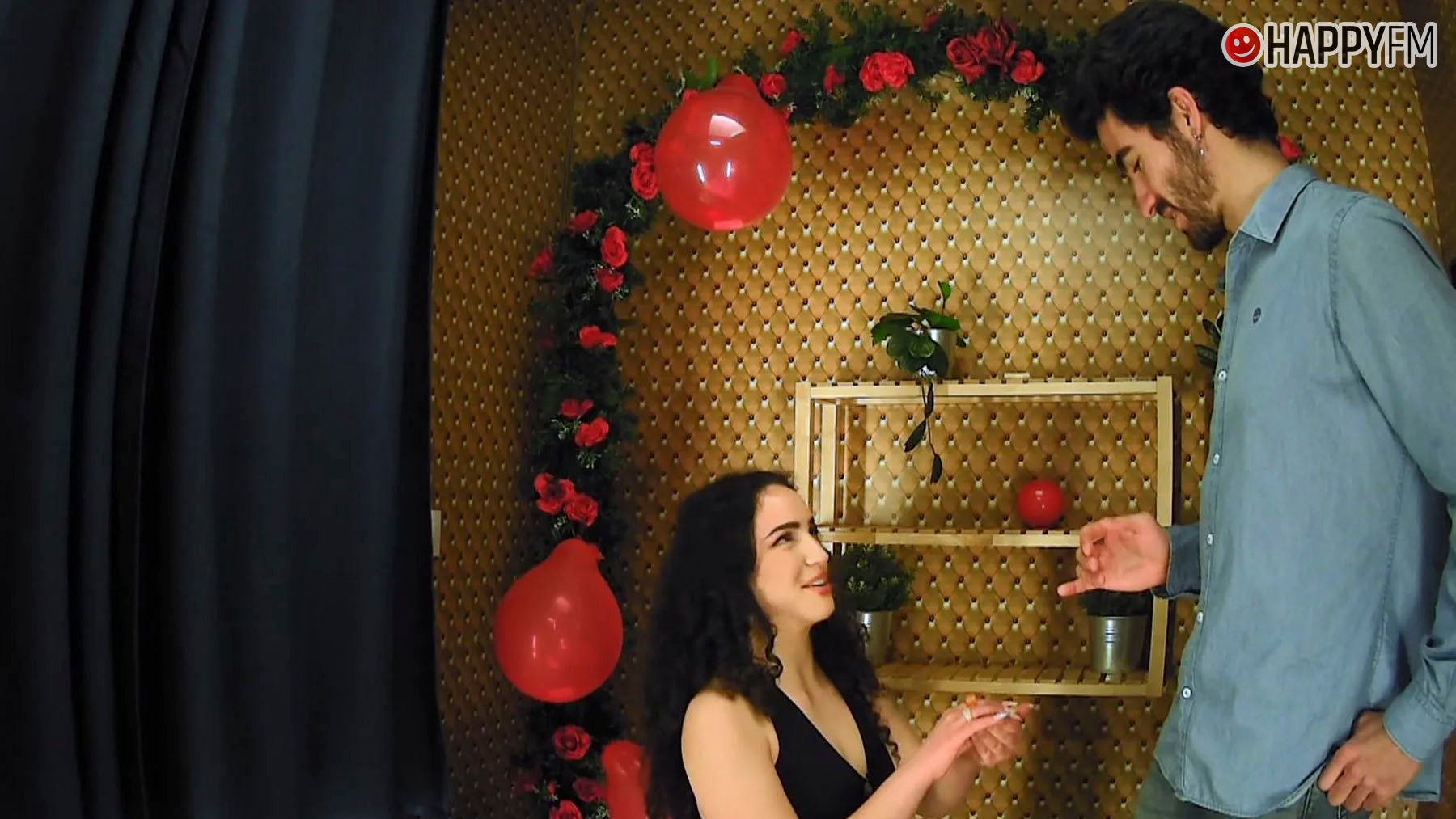 «Arrodíllate y representa una pedida de mano a tu cita», leyó Celia. Al escucharla, el médico le dijo: «Vamos a hacerlo al revés: ¿Me lo pides tú?». Una petición que la comensal no negó en ningún momento. De hecho, rápidamente hincó la rodilla y le pidió matrimonio. Una propuesta que Álex aceptó.