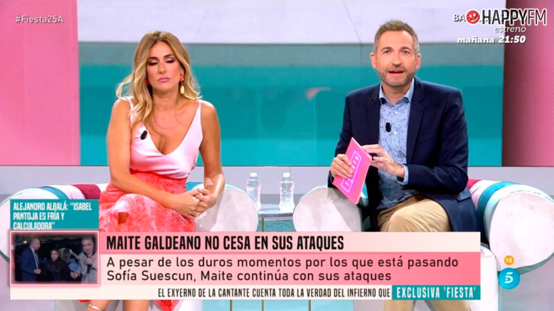 Completamente, rota, la joven contó cómo ha tenido que alejarse de su madre para poder tener un poco de paz en su vida. Unas declaraciones muy contundentes que han sido comentadas en Fiesta, programa de Telecinco. De hecho, y como estaba previsto, Kiko Jiménez iba ha acudir al formato para hablar de la situación, como novio de la protagonista del caso. Sin embargo, el andaluz no acudió a su puesto de trabajo porque prefería quedarse en casa cuidando a Sofía Suescun, quien no lo está pasando bien. Eso sí, esto no impidió que el equipo del programa abordase el tema.