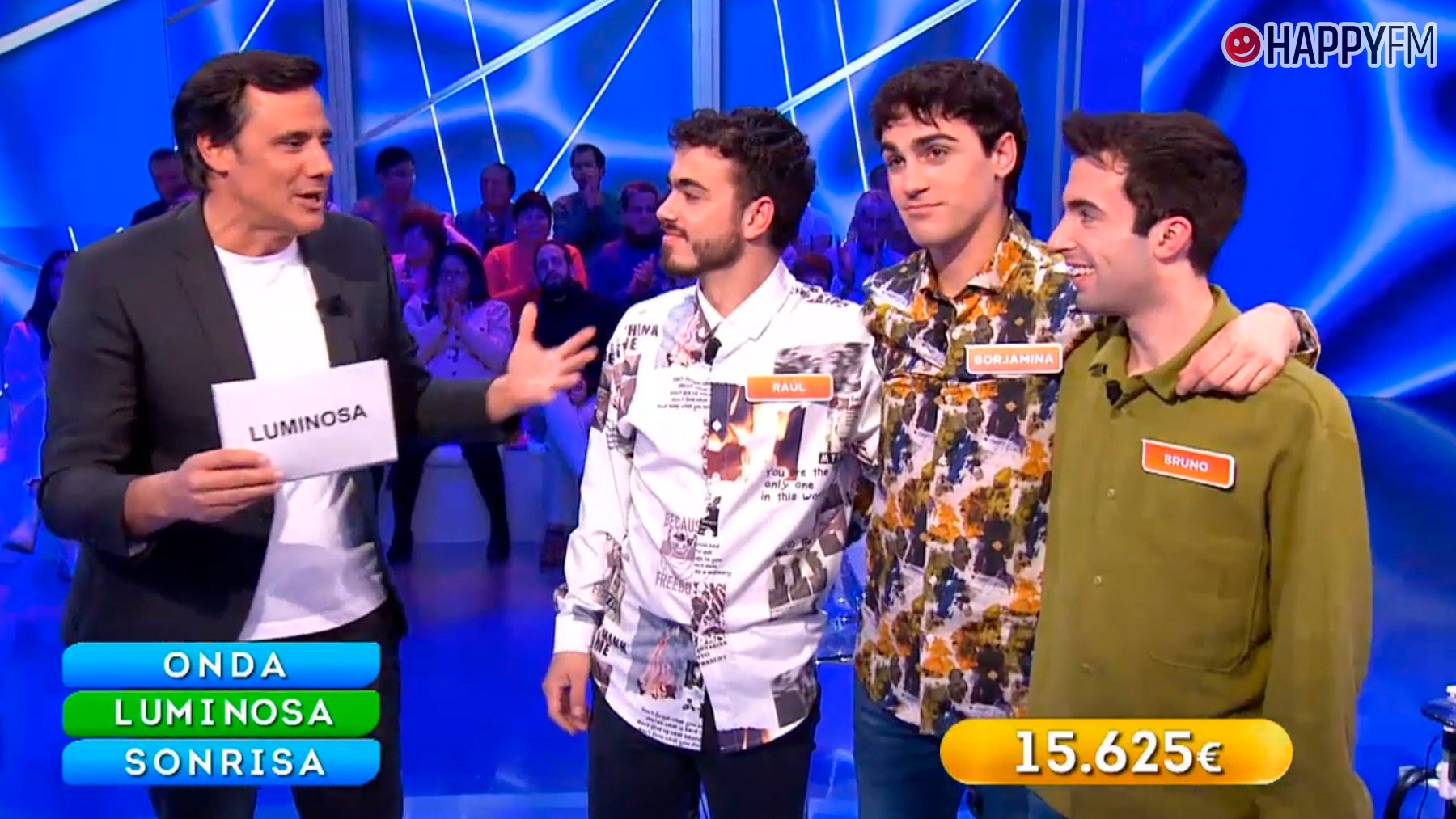 Fue entonces cuando Raúl parece que dio en la clave: «Luminosa». Una respuesta que convenció muchísimo a sus dos compañeros. Hasta tal punto que no dudaron en apostar por ella: «Una onda luminosa, una onda de luz, y una sonrisa luminosa, que irradia felicidad», respondió Borjamina como portavoz del equipo.