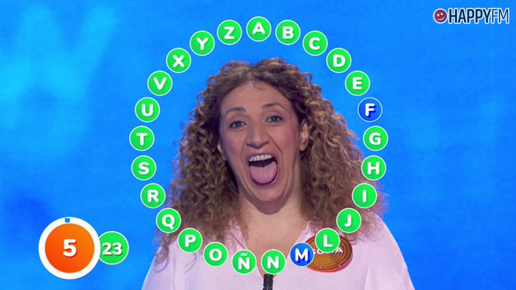 La concursantes se enfrentaba al rosco con 132 segundos, y tras concluir la primera vuelta con 20 aciertos y 14 segundos de tiempo para acertar las letras que le faltaban, se concentró al máximo en la segunda vuelta. De esta forma, acertó dos de las letras que le quedaban, dando pie a una curiosa celebración.