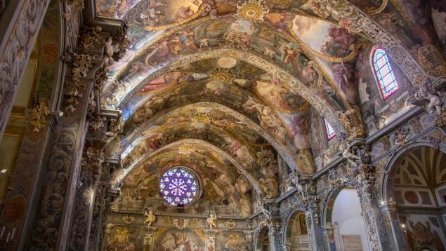 El hecho de que a la iglesia de San Nicolás se la conozca como la “Capilla Sixtina de Valencia” no es un truco turístico sin fundamento. Al entrar, la sensación es clara: todo el techo está pintado, de extremo a extremo, sin apenas espacios en blanco. Frescos por todas partes, escenas que se encadenan, figuras que parecen moverse y un conjunto que te envuelve.