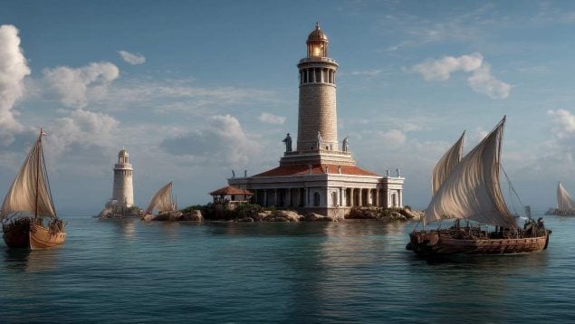 La historia del Faro de Alejandría, una de las siete maravillas del mundo antiguo, su construcción y su misteriosa desaparición.