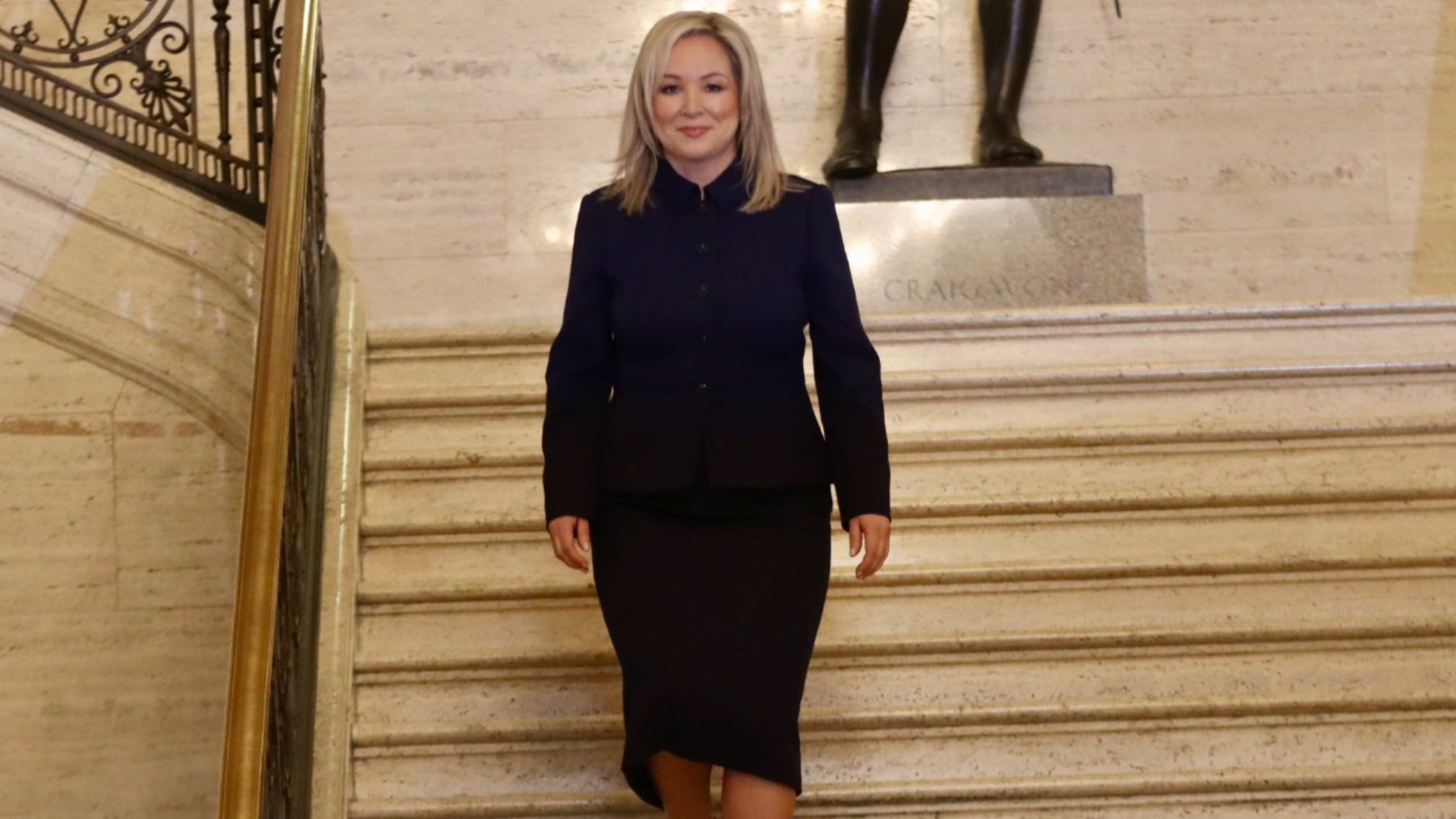 O’Neill, que se ha comprometido con la reunificación irlandesa, ha bajado de la imponente escalinata del edificio del Parlamento de Stormont, pasando junto a una estatua de James Craig, Lord Craigavon, primer ministro principal de la región, para tomar posesión de su cargo.